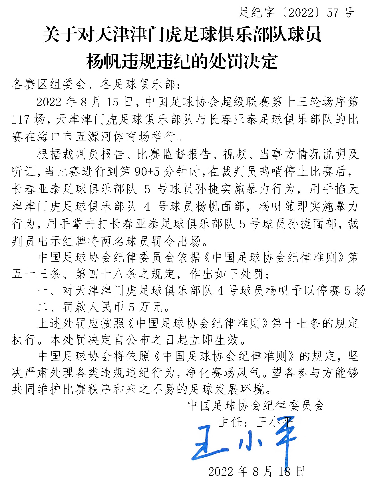 中国足协深夜公布四人纪